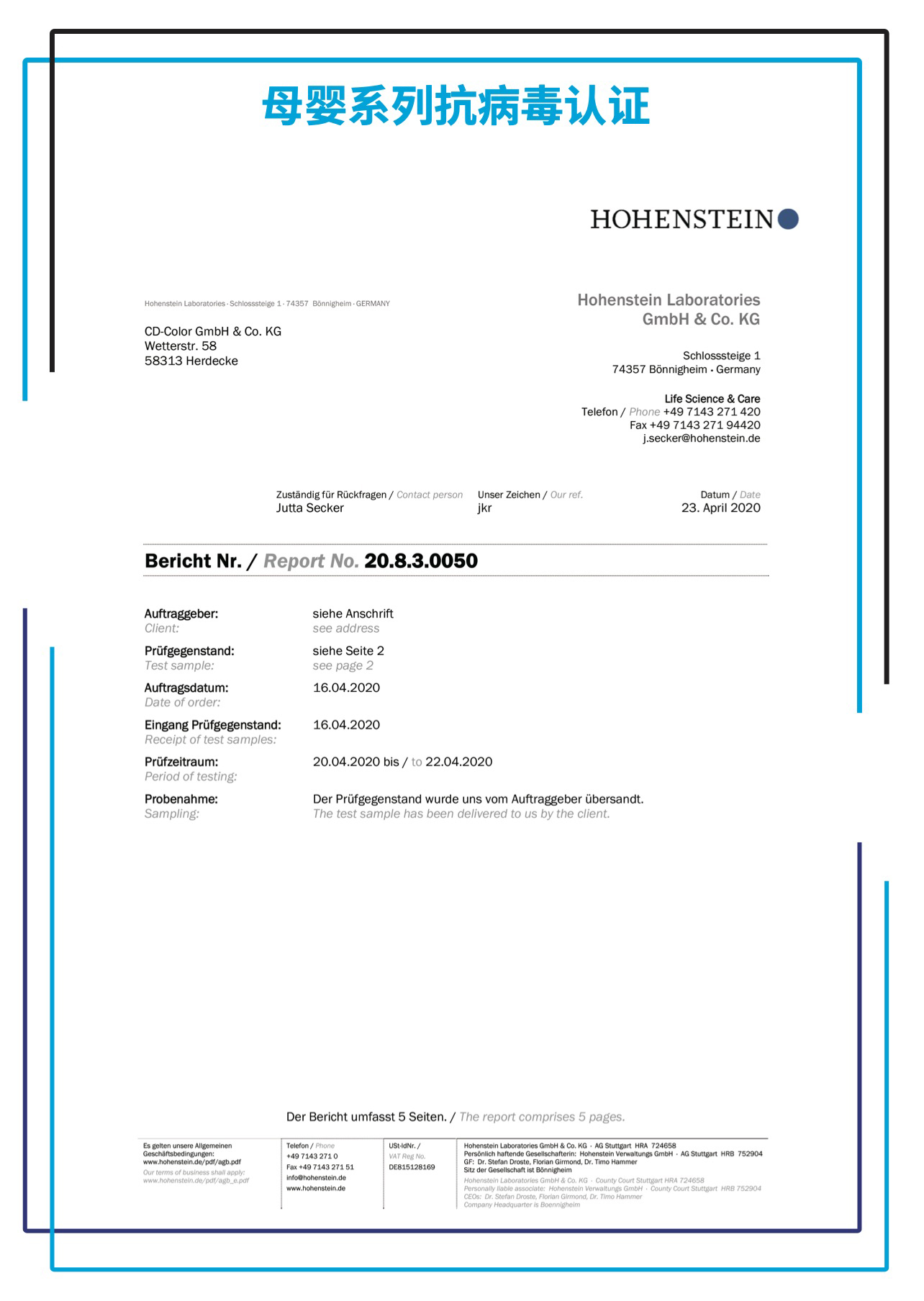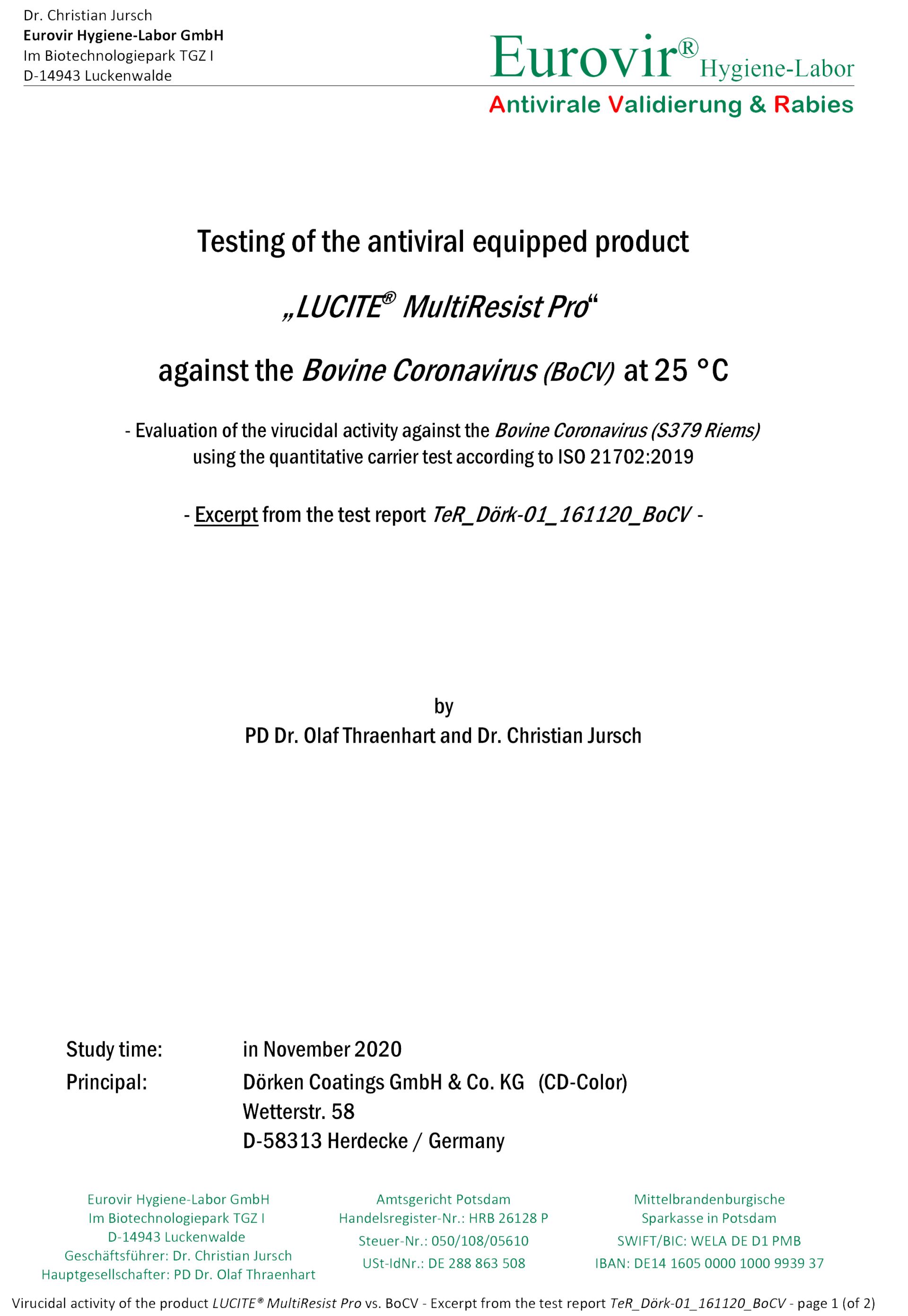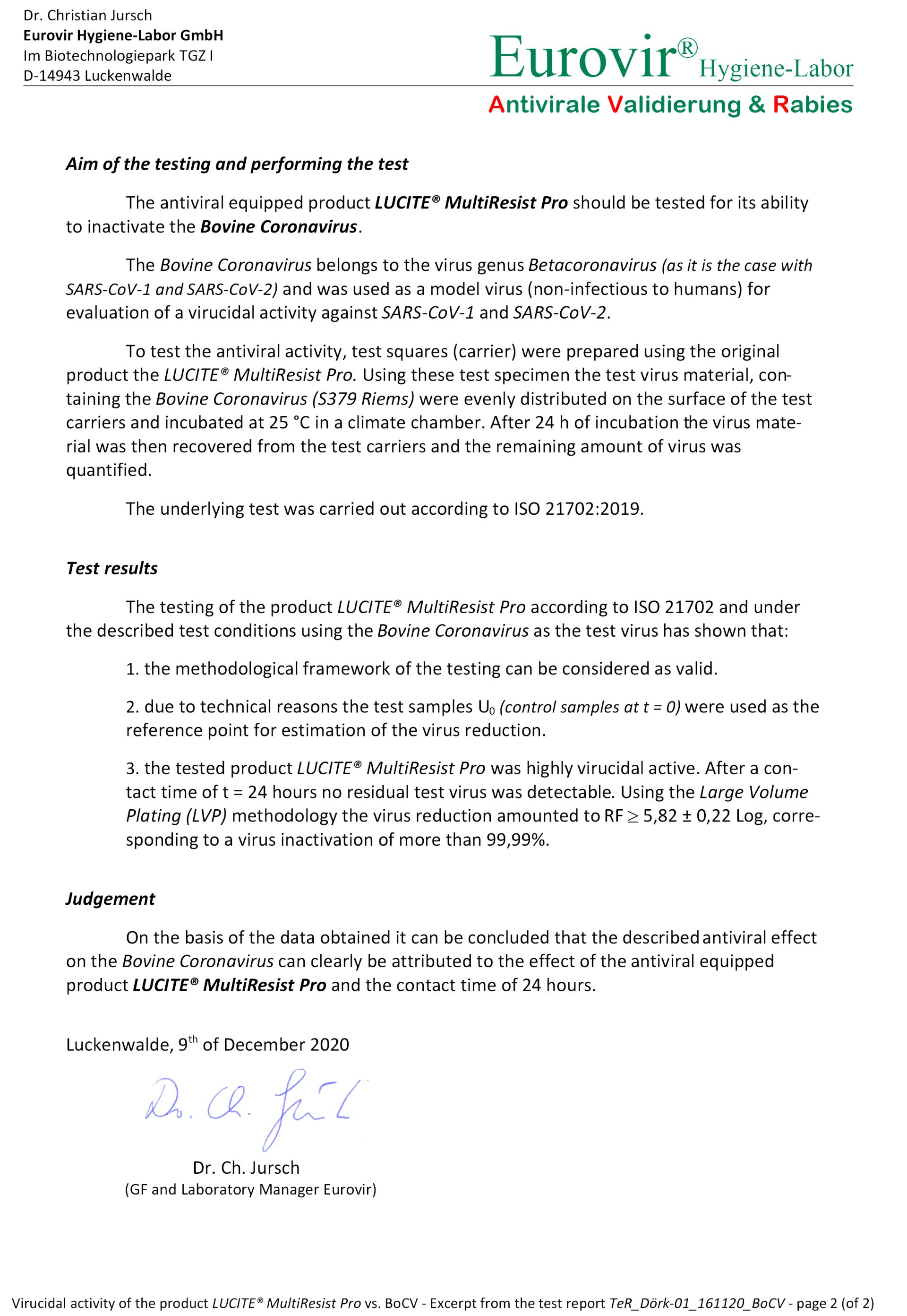 欧洲专业检测机构Eurovir鉴定报告